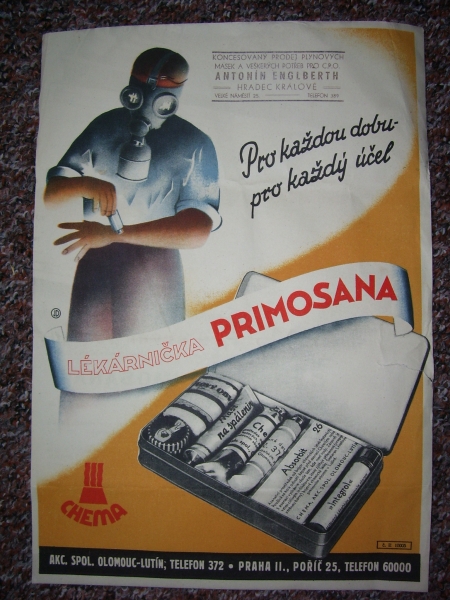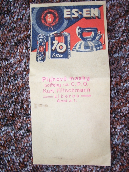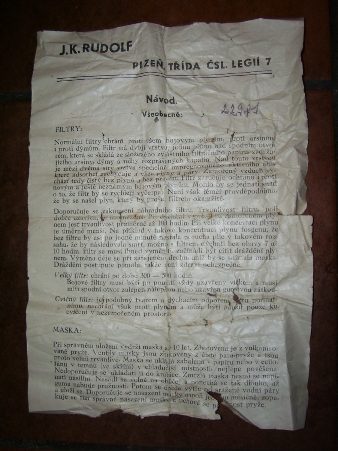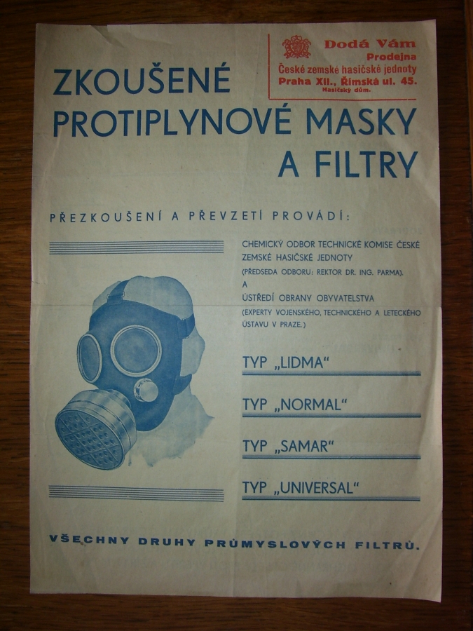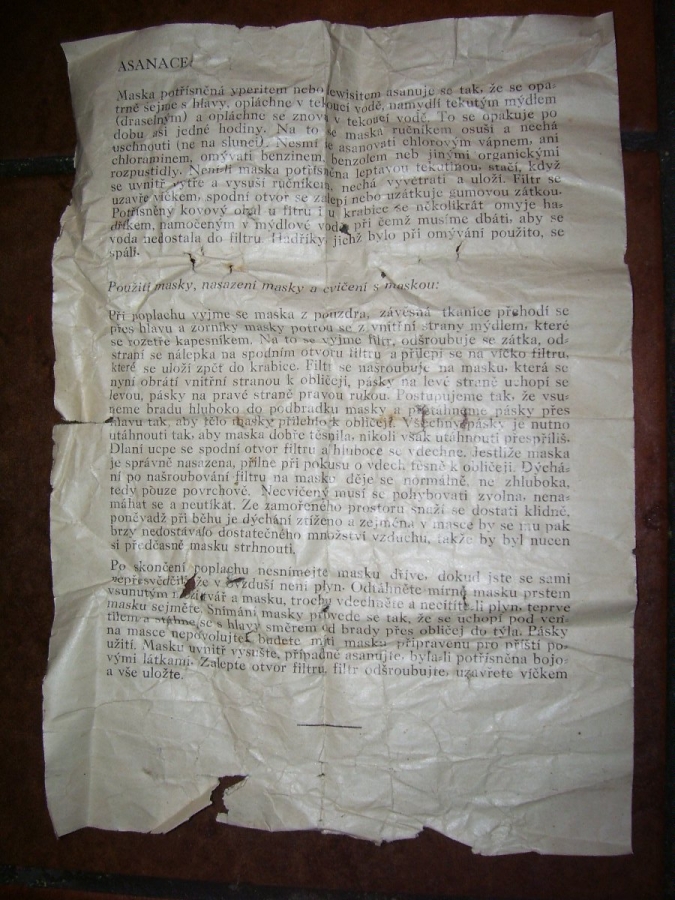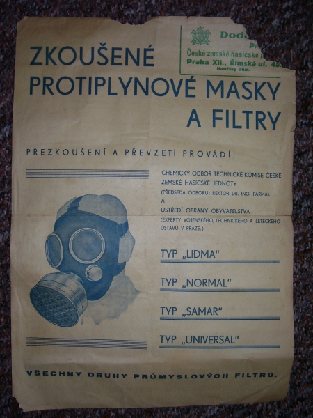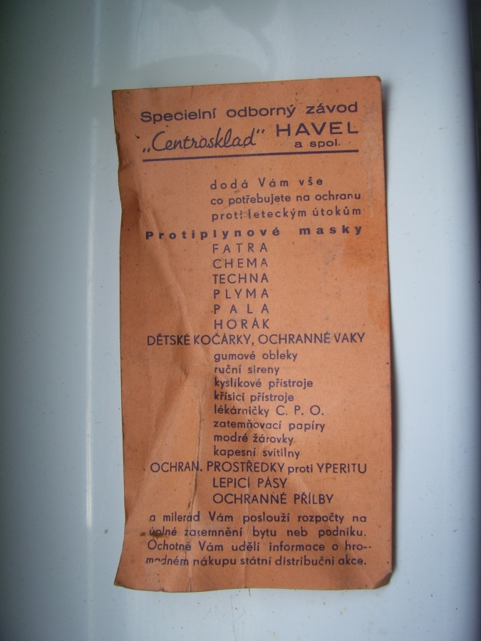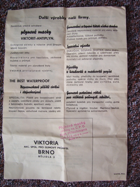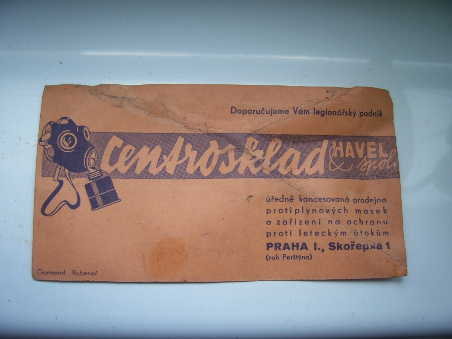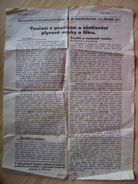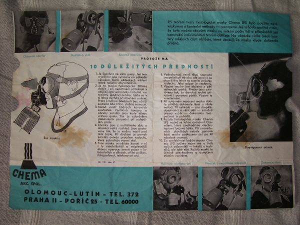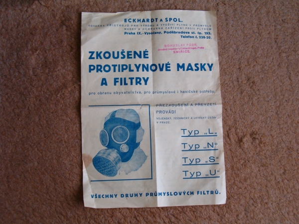 Prospekty s razítky prodejců plyn. masek a potřeb C.P.O. (Leaflets with stamps):Osobní stránka na adrese: gasmaska.stranky1.cz