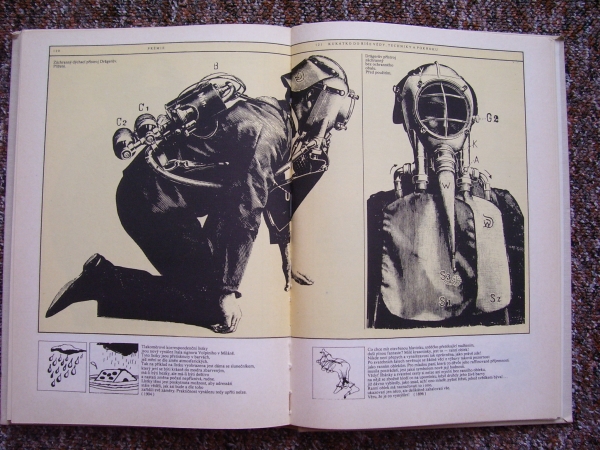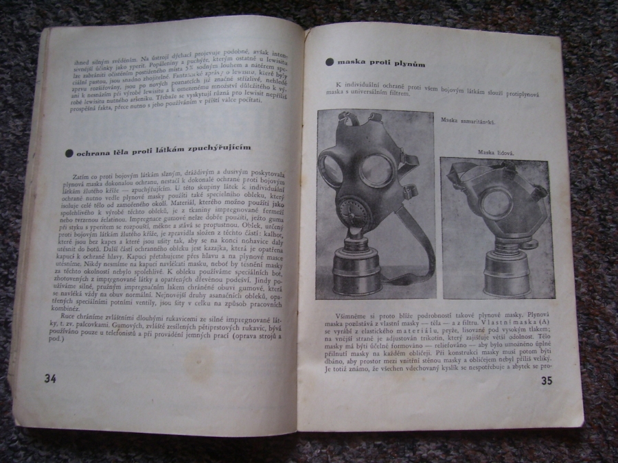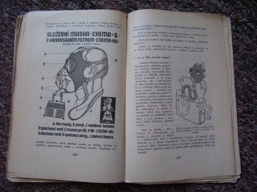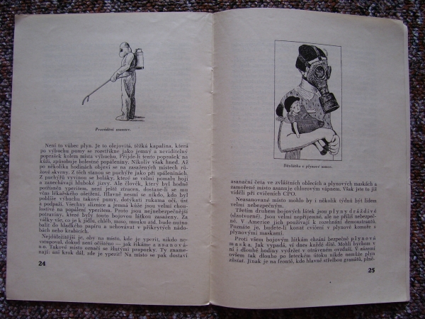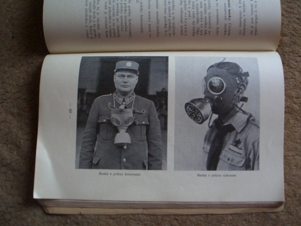 Knížky a časopisy ve kterých se vyskytují plynové masky, první fotky je titulní strana a fotka druhá je jedna ze stránek v knížce.