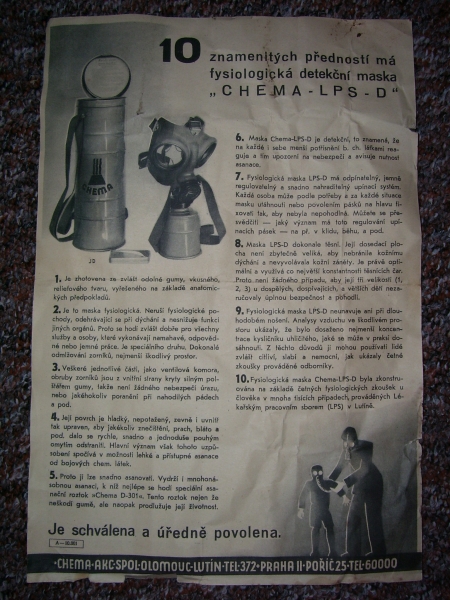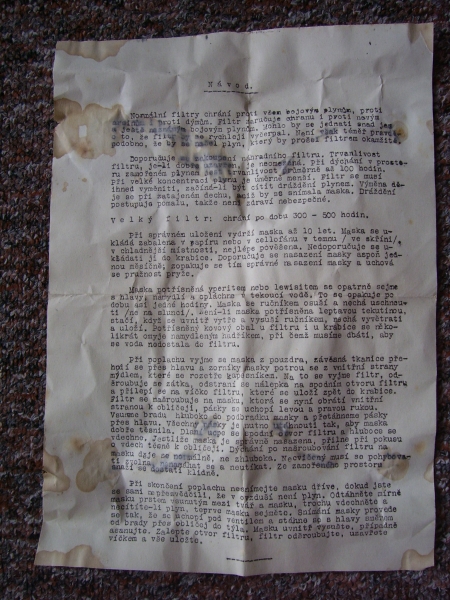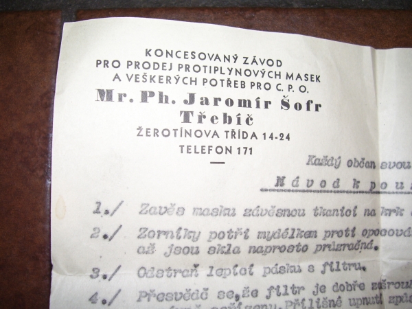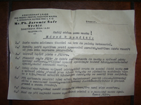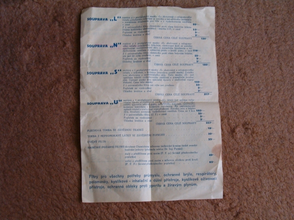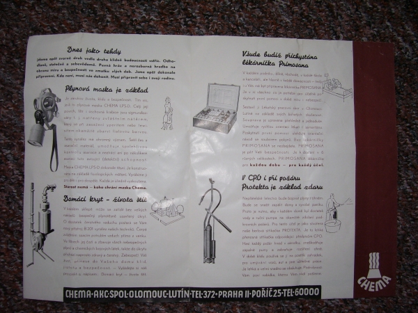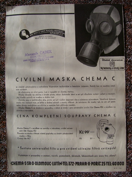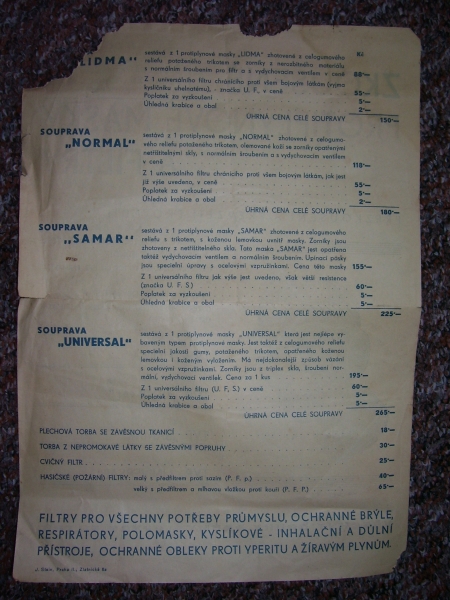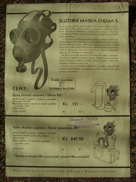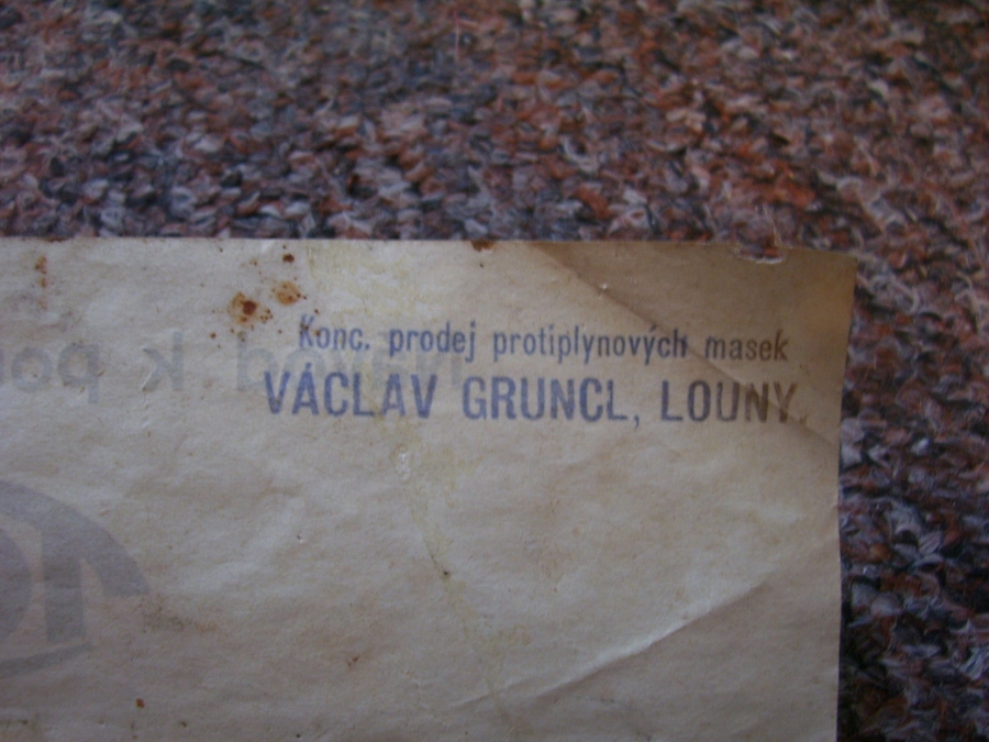 Prospekty s razítky prodejců plyn. masek a potřeb C.P.O. (Leaflets with stamps):Osobní stránka na adrese: gasmaska.stranky1.cz