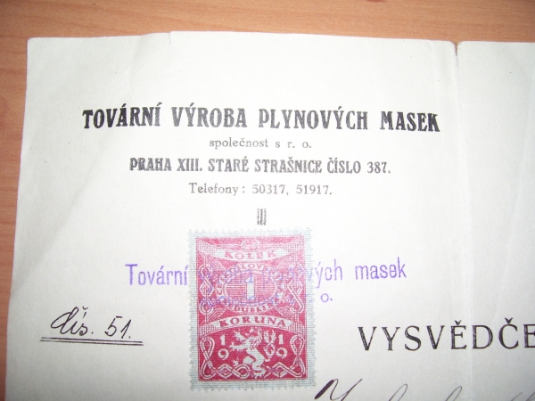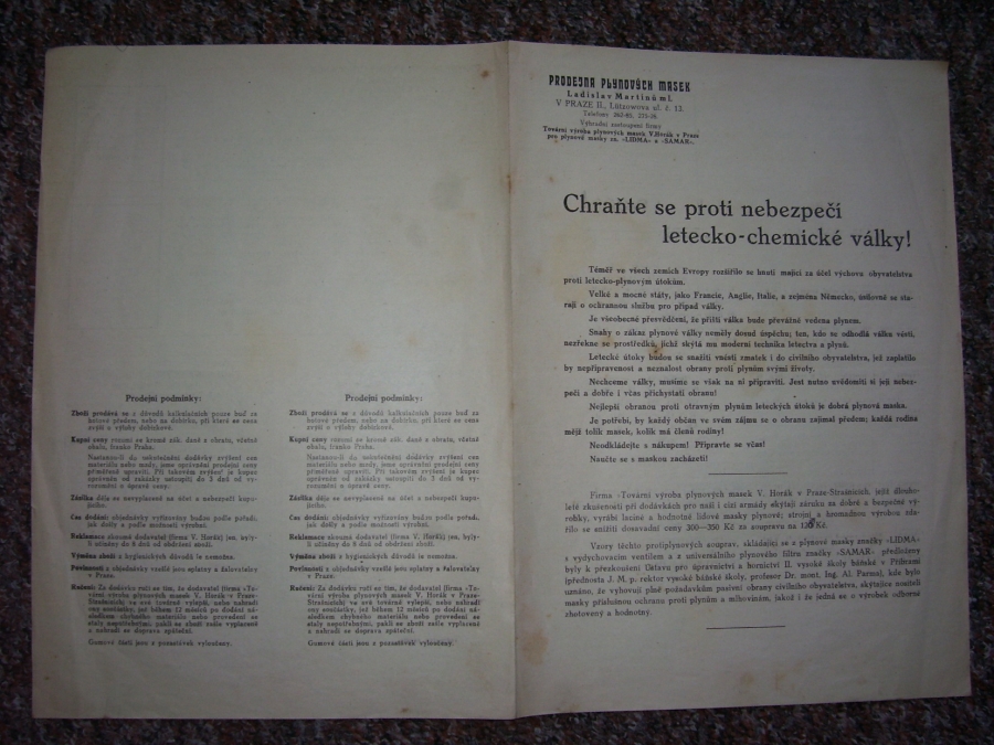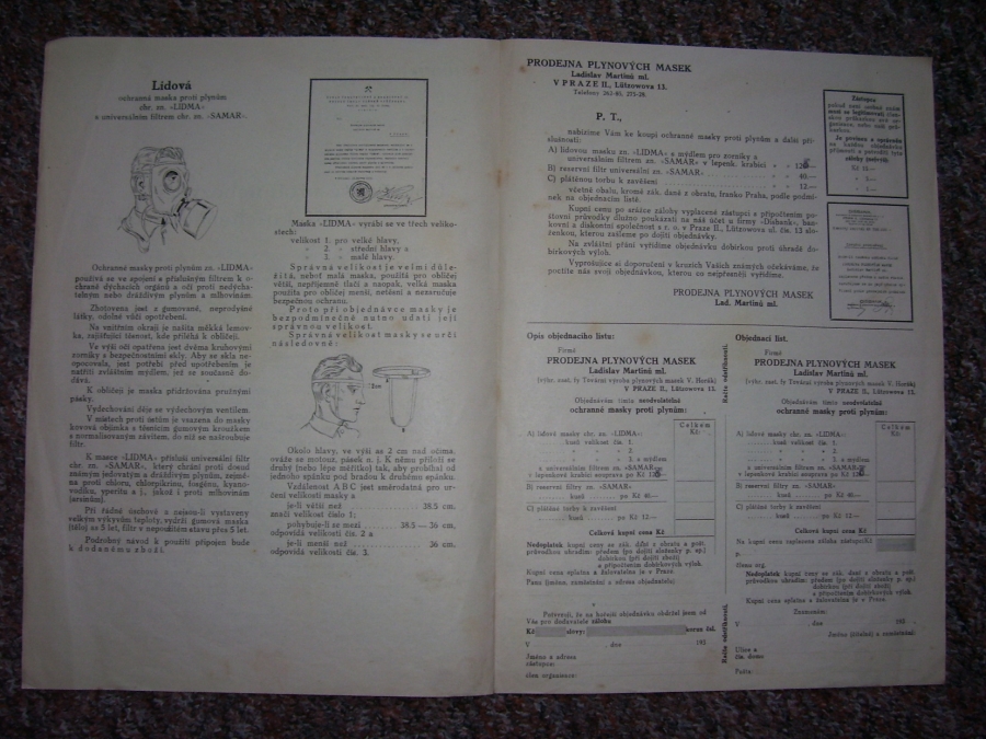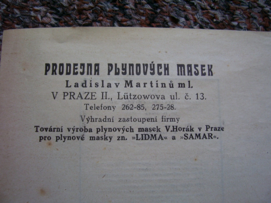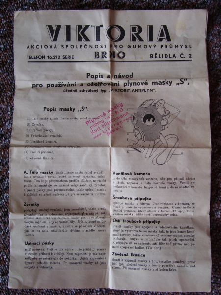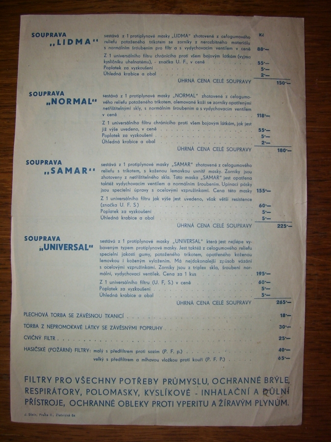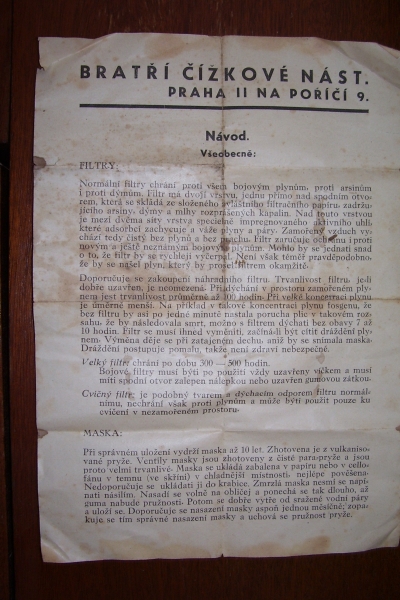 Prospekty s razítky prodejců plyn. masek a potřeb C.P.O. (Leaflets with stamps):Osobní stránka na adrese: gasmaska.stranky1.cz