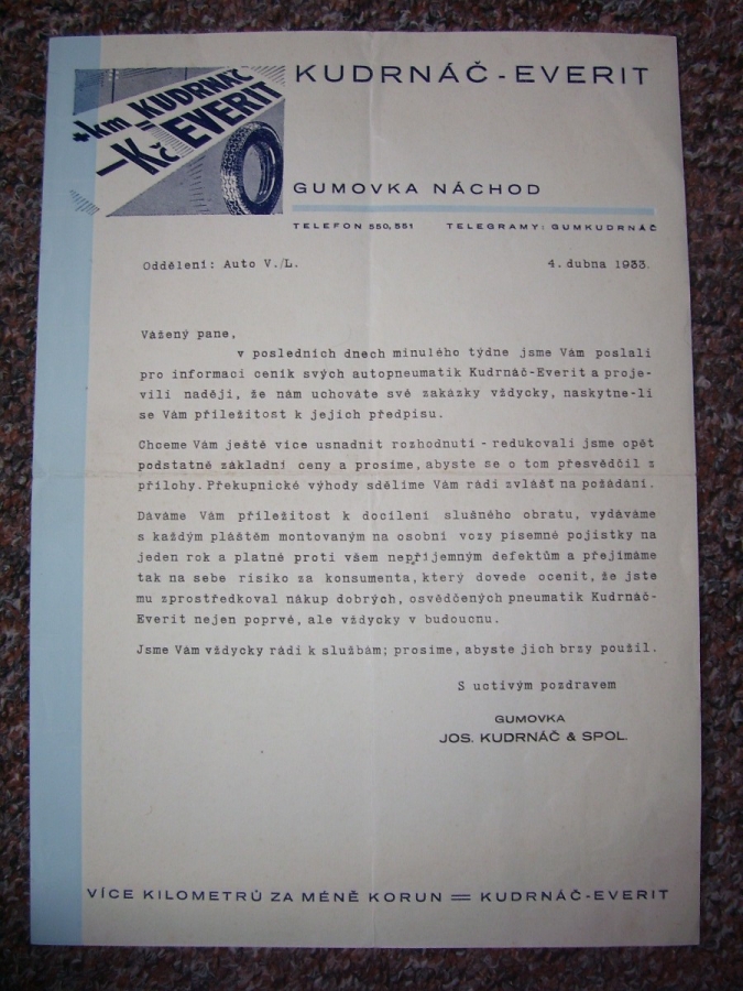 Dostalo se ke mě několik výrobků a firemní korespondence firmy Kudrnáč a tak jsem udělal samostatnou stranku.