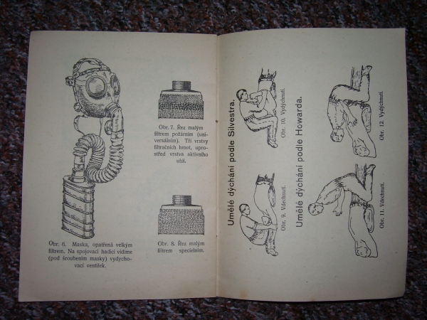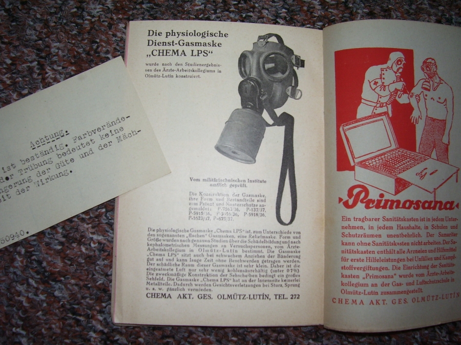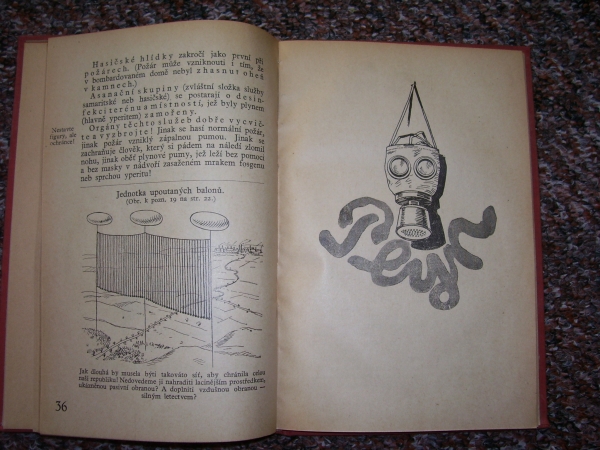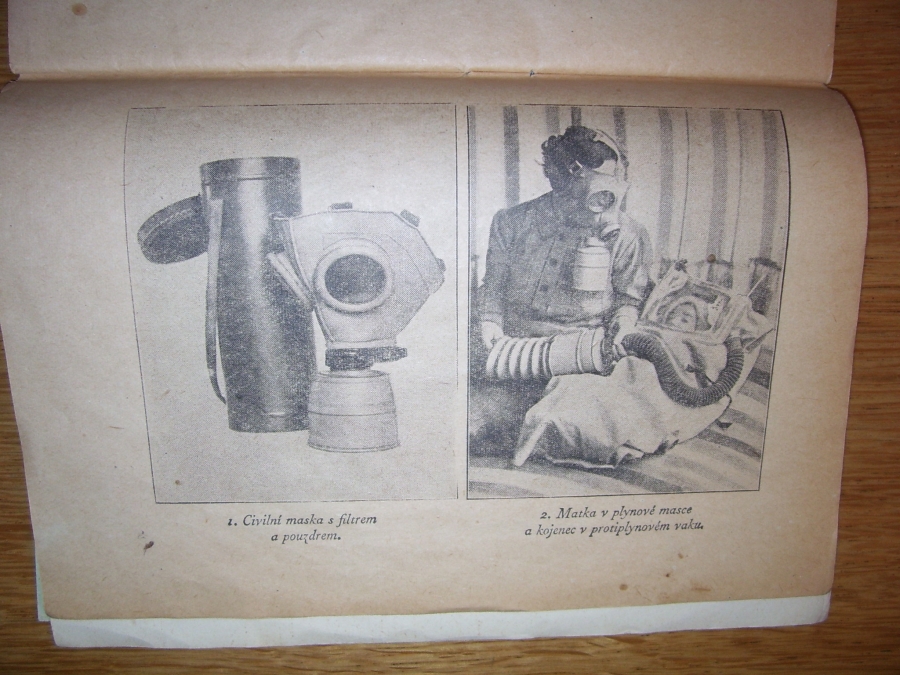 Knížky a časopisy ve kterých se vyskytují plynové masky, první fotky je titulní strana a fotka druhá je jedna ze stránek v knížce.